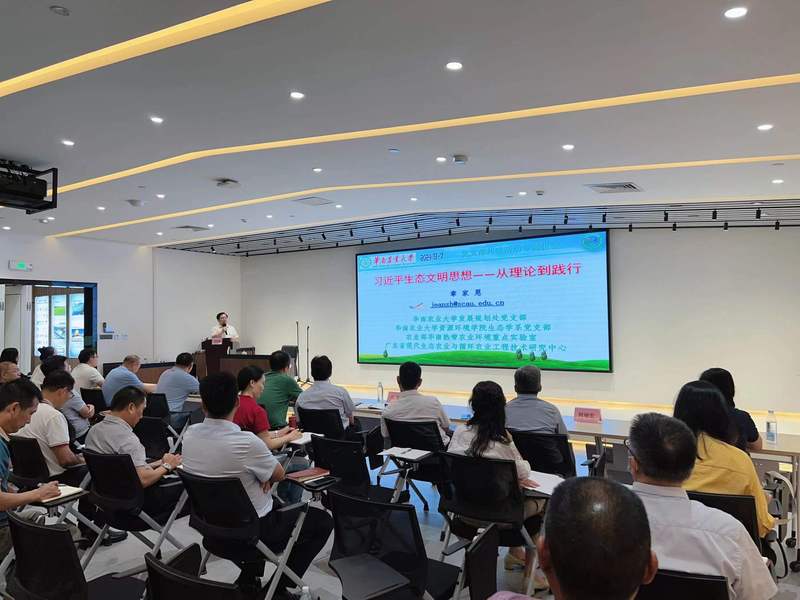 随后,在南沙明珠现代都市农业实验园,ok138cn太阳集团党支部和区直机关工委、区农业农村局和现代农业集团各党支部开展了联学共建活动。章家恩同志以《习近平生态文明思想—从理论到践行》为题,向广州南沙现代农业产业集团、南沙农业农村局等110多名党员干部讲授专题党课。章家恩同志从生态学的视角,围绕什么是生态、什么是生态文明、习近平生态文明思想体系与科学内涵解读、生态文明建设实践及案例介绍等四个方面进行讲授,课程报告内容丰富、重点突出,既有政治理论高度,又有实践指导作用,深入浅出地引导各位党员干部特别是奋斗在农业农村一线的党员干部更加深刻地领悟习近平生态文明思想的理论意义、核心要义和实践伟力。